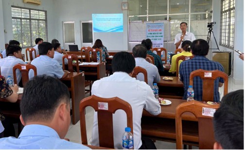 Hình: Ông Phan Văn Hùng – GĐ HTX NN Thuỷ sản Long Sơn tham gia thảo luận tại Hội thảo