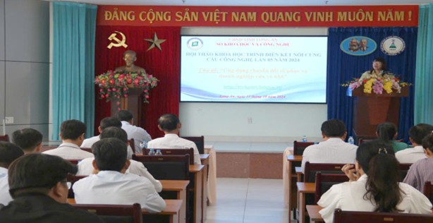 Sáng ngày 31/10/2024, Trung tâm Ứng dụng, kỹ thuật, thông tin KH&CN (Trung tâm) đã phối hợp cùng VNPT Long An tổ chức hội thảo khoa học trình diễn kết nối cung cầu công nghệ lần thứ 5 năm 2024 với chủ đề “Ứng dụng chuyển đổi số phục vụ doanh nghiệp vừa và nhỏ”. Hội thảo do ThS. Hồ Thị Diệp Thúy – Phó Giám đốc Sở Khoa học và Công nghệ chủ trì với sự tham dự của hơn 30 đại biểu đến từ Trung tâm Khuyến công và xúc tiến thương mại, Trung tâm Dịch vụ nông nghiệp tỉnh, đại diện phòng Kinh tế và Hạ tầng huyện Cần Đước, Cần Giuộc, Châu Thành, Thủ Thừa và các doanh nghiệp, cơ sở sản xuất, hợp tác xã trên địa bàn tỉnh.