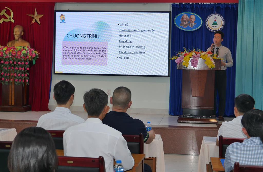 Theo ThS. Lê Thanh Quang - Giám đốc Trung tâm Ứng dụng, kỹ thuật, thông tin khoa học và công nghệ, ngày nay, xu hướng sử dụng thực phẩm sấy khô trở nên phổ biến. Sự tiện lợi, nhanh chóng và an toàn cho sức khỏe là những yếu tố quan trọng khiến cho nhu cầu sử dụng thực phẩm sấy ngày càng tăng cao. Với sự tiến bộ của khoa học - kỹ thuật, trong vài thập kỷ gần đây, sấy đông khô hay còn gọi là sấy thăng hoa là phương pháp chế biến, bảo quản được đặc biệt quan tâm do khắc phục được nhược điểm biến đổi hình dạng của các sản phẩm sấy; đồng thời, giúp giữ được hương vị, hàm lượng dinh dưỡng và độ giòn tự nhiên của thực phẩm mà không cần sử dụng chất bảo quản hóa học. Tại buổi hội thảo, các đại biểu được nghe đại diện công ty TNHH công nghệ thực phẩm Bear (công ty Bear) giới thiệu chi tiết về cấu tạo thiết bị, nguyên lý và cách vận hành; một số lưu ý về đảm bảo chất lượng quy trình sấy và quy trình sản xuất một số sản phẩm trong chế biến thực phẩm như trái cây, đông trùng hạ thảo, thức ăn gia súc, gia vị… Theo đại diện của công ty Bear, hệ thống của thiết bị được thiết kế tùy theo nhu cầu của khách hàng, đảm bảo chất lượng đáp ứng theo tiêu chuẩn GMP của EU, FDA Hoa Kỳ. Hội thảo cũng là cơ hội để các trung tâm về ứng dụng khoa học, công nghệ cũng như các doanh nghiệp, các hợp tác xã có thể tiếp cận công nghệ tiên tiến, có thêm lựa chọn để ứng dụng vào sản xuất, tìm ra giải pháp sản xuất hoàn hảo cho doanh nghiệp; nâng cao chất lượng và khả năng cạnh tranh của sản phẩm, đẩy mạnh phát triển ngành nghề sản xuất tại thị trường Việt Nam và xuất khẩu.